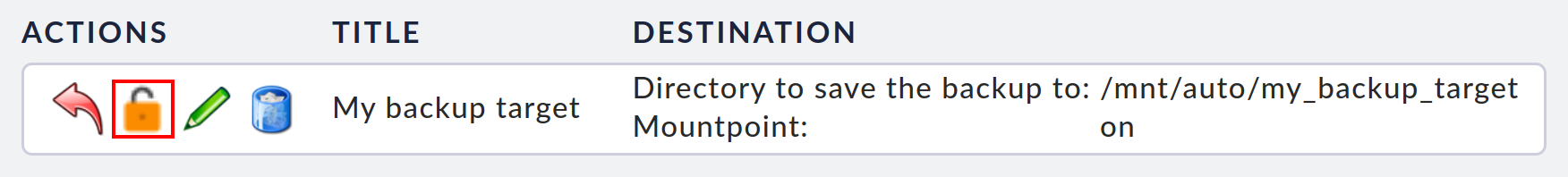 Hier im Beispiel ist eine Netzwerkfreigabe unter dem Pfad /mnt/auto/backup konfiguriert.