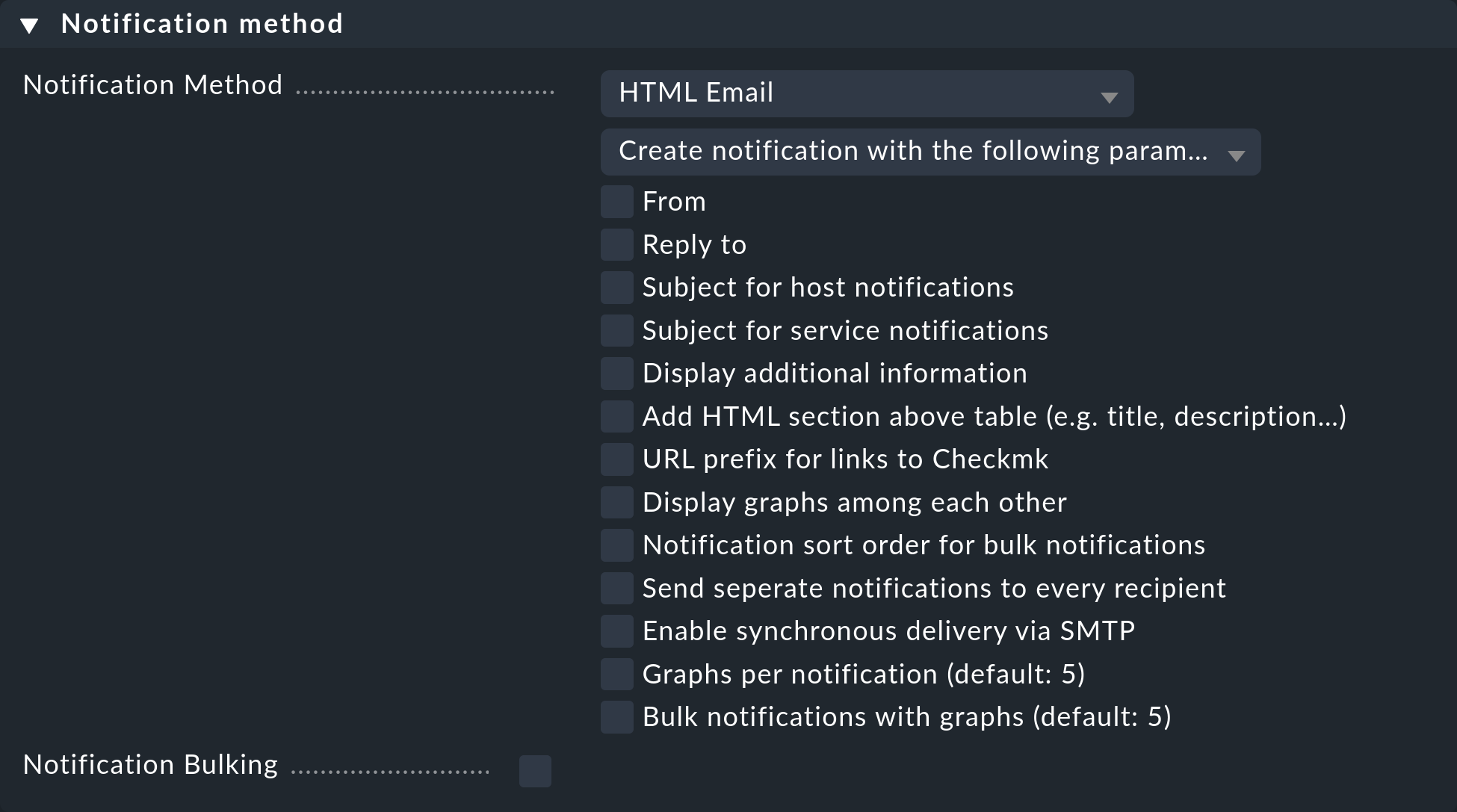 Al enviar correos electrónicos HTML, puede que desees añadir información adicional o definir de forma flexible una dirección de respuesta (Reply to) a un contacto concreto para cualquier consulta. Para ello, existe la regla Setup > Services > Service monitoring rules > Parameters for HTML Email, y en las reglas de notificación el método de notificación de correo electrónico HTML. Con estas reglas puedes añadir una serie de parámetros, como la dirección de respuesta, campos adicionales con detalles o texto libre formateado como HTML.