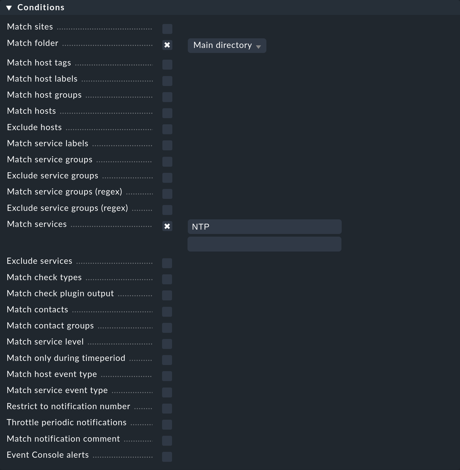 Como es habitual con todas las reglas de Checkmk, es posible una aplicación de granulación muy fina, de modo que puedas individualizar un conjunto detallado de notificaciones a hosts y servicios según tus necesidades.