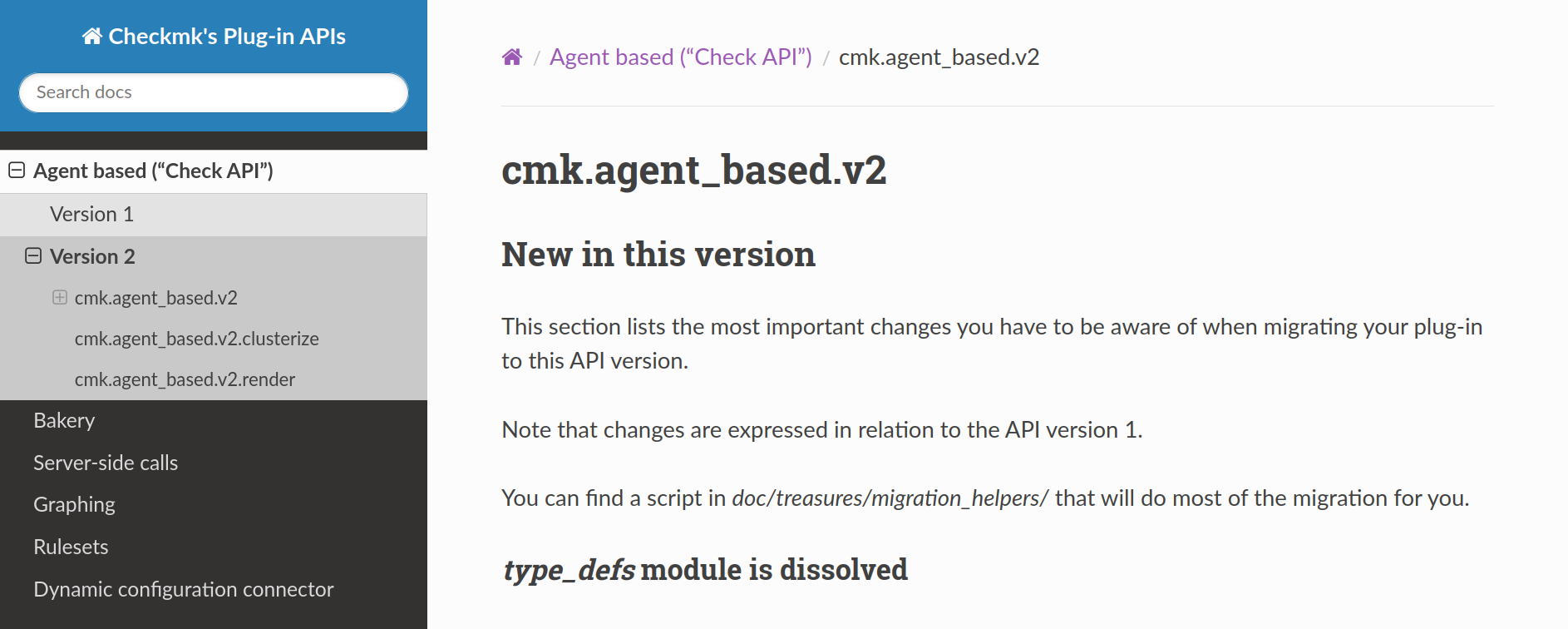 Help > Developer resources > Plug-in API references > Agent based ("Check API") |