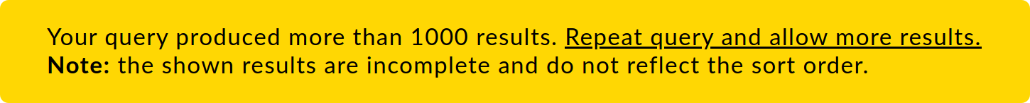 Se vuoi vedere più di mille record, puoi passare al livello successivo cliccando su Repeat query and allow more results. Qui il limite è di 5.000 record. Se questo limite è stato nuovamente superato, conillimitato puoi continuare. Poiché si tratta di un'azione potenzialmente rischiosa, è necessario disporre dei diritti di amministratore. Sei stato avvisato!